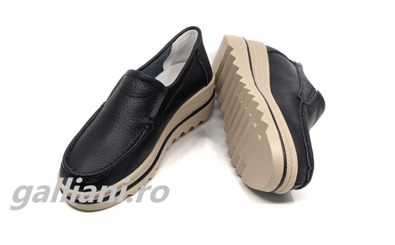 Pantofi casual negri dama-piele naturala integral,talpa usoara din spuma-galliani.ro