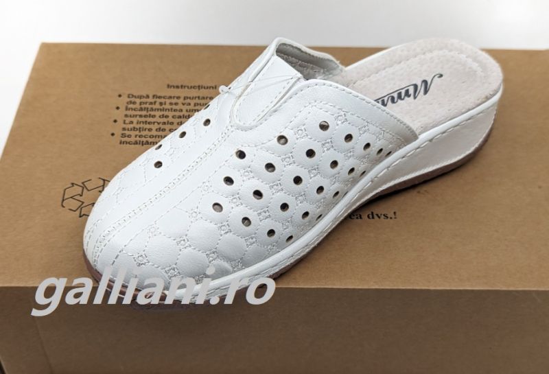 Papuci albi casual dama-interior si brant din piele naturala-galliani.ro