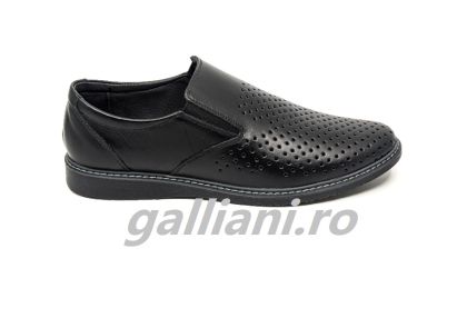 Pantofi negri casual barbati-piele naturala perforata-fabricat in Romania-galliani.ro